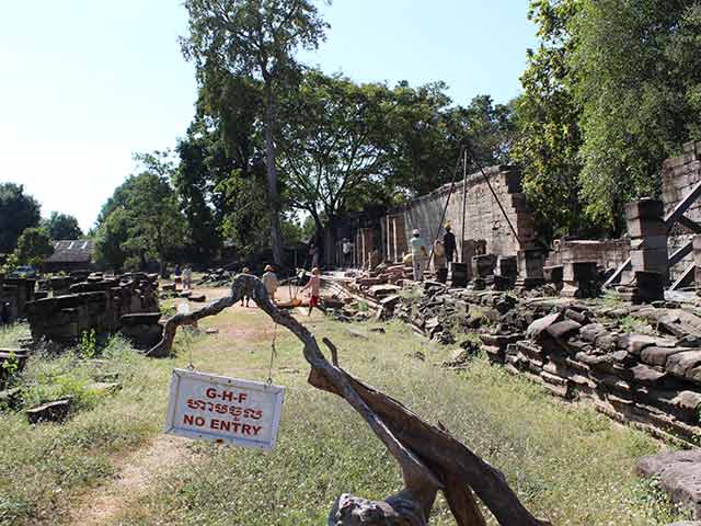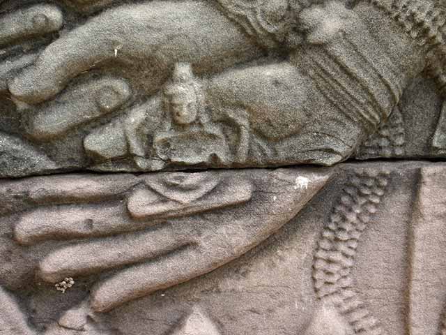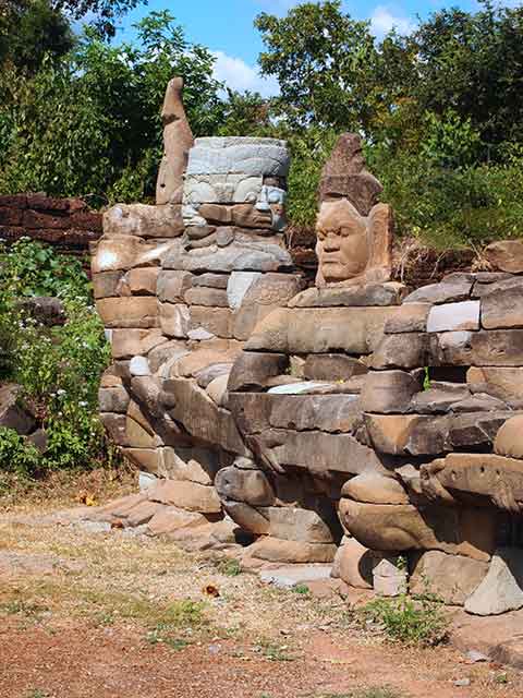 南参道のデヴァーとアスラの像が積み直されていましたが、残念ながら、ほとんどの像の頭部は失われています。