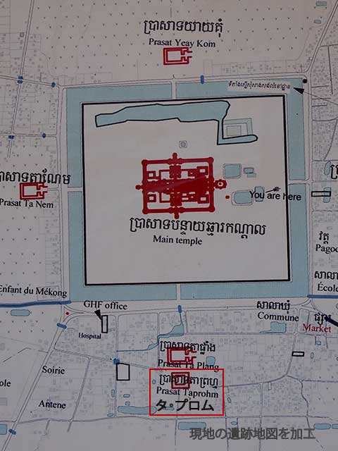 6つの衛星寺院のうちの一つ、タ・プロムは、バンテアイ・チュマールの南側にあります。