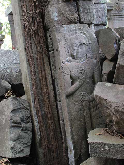 1999年、盗掘された2体がタイ領内で発見、押収され、現在は、プノンペン国立博物館の軒下に置かれています。