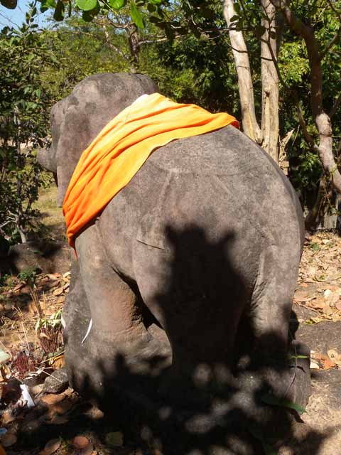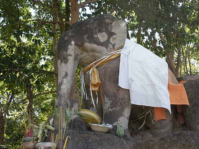 寺院名は、12段のラテライト基壇上の角に、象の彫像が置かれていることに由来します。