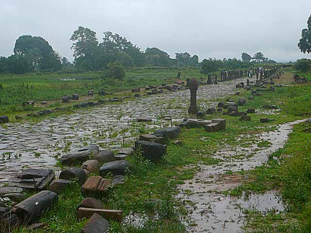 祠堂から遠望すると、参道や四角形の宮殿、二つのバライが見えます。