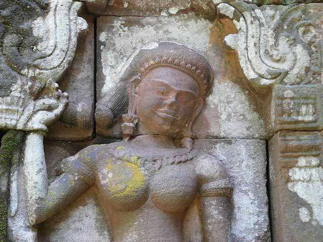 デヴァターは、アンコール・ワットの像と比べると、少し太めの丸顔です。
