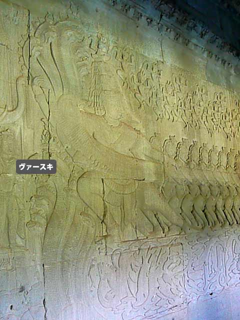 ヴァースキ Vasuki パーターラの世界に住むナーガ(蛇)の王。乳海攪拌の綱になる大蛇。